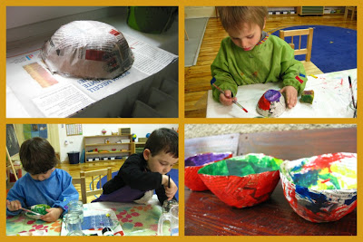 За великденските яйца от рано планирах да направим купички от папие-маше. Имаше и неуспешни опити, изискваше се време и доста търпение. На папие-машето му трябваха 1-2 дни да изсъхне, после боядисахме с акрилна боя и пак трябваше да чакаме да изсъхне…