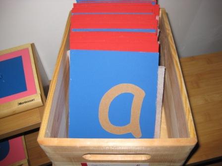Тъй като, дори и да се закупят всички Монтесори материали, пак остава частта с Българския език, за който материали трябва да си направим сами, се захванах с буквите. Има вариант да обучаваме българчетата да пишат на английски, но според мен е по-важно първо да познават собствения си език и това да им служи за основа. В обучението по Език по Метода Монтесори,  буквите се разглеждат като фонетични звуци, така че детето придобива умението да разпознава звуците, които съставят дадена дума. Отначало разпознава началния звук, или буквата с която започва думата и така докато се научи да раздели думата на отделните и букви.